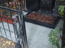 Далее установили цветник. Землю в цветнике мы закрыли корой, это не позволит земле подниматься на гранит во время дождя. Так могила выглядит полностью обустроенной. И что для некоторых не маловажно – подобное покрытие можно демонтировать без потерь и уложить его обратно (требуется при необходимости провести очередное захоронение).